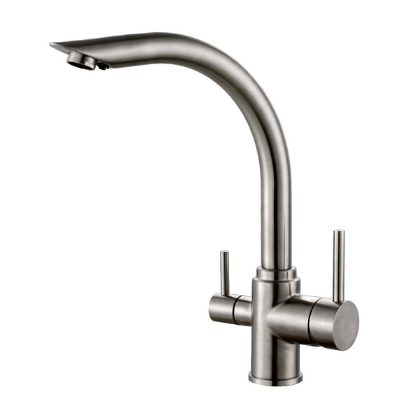 Смеситель для кухни бренда Haiba. Изготовлен из нержавеющей стали. Картридж 35 мм. Укомплектован аэратором. Гибкая подводка 40 см. С поворотным изливом.