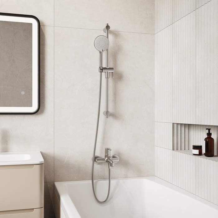 Стильный смеситель для ванны сочетает актуальный современный дизайн и новый трендовый оттенок матового хрома. Тонкая удлиненная ручка добавляет изящества и комфорт в управлении. Расстояние между ручкой и изливом увеличено для большего удобства. Без душевых аксессуаров в комплекте.