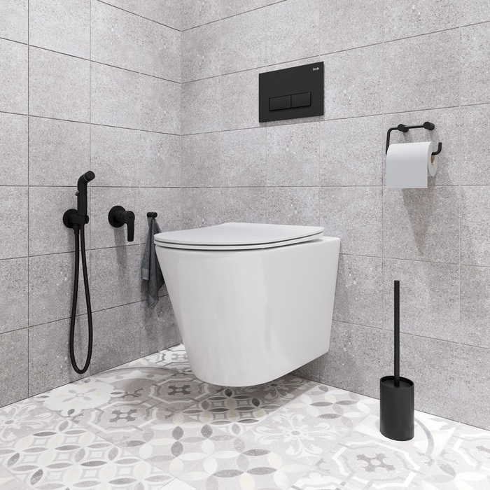Cмеситель с гигиеническим душем Ray на 2 отверстия в трендовом черном цвете имеет универсальный дизайн и подойдет для различных вариантов интерьерных решений. Тонкий баланс плавных линий и строгой формы изделия позволяет придать ему удивительно гармоничный и завершенный облик. Смеситель скрытого монтажа Ray будет занимать минимум пространства туалетной или ванной комнаты, деликатно служа для решения важных гигиенических задач. В комплекте лейка и душевой шланг из ПВХ (1,2 м).