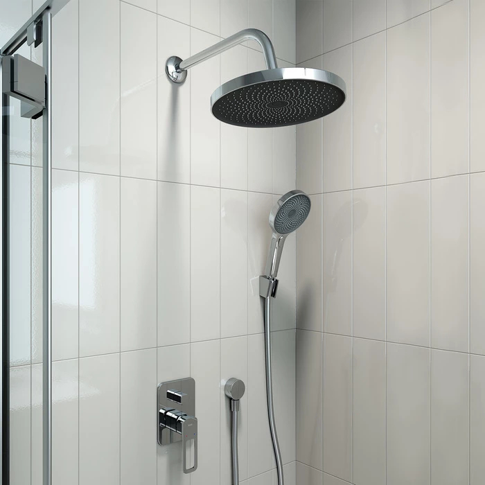 Встраиваемый смеситель Slide лаконичного дизайна выглядит стильно и подойдет для установки над ванной и в зоне душевого ограждения. Подключается к двум душевым аксессуарам: душевому гарнитуру, верхней, ручной лейке, настенному изливу – выбирайте удобную комбинацию сами. Переключение воды между аксессуарами осуществляется керамическим дивертором. За счет скрытого монтажа и отсутствия выступающих элементов смеситель экономит пространство и прост в уборке. Подключается с помощью любых труб с диаметром входных отверстий ½ дюйма.