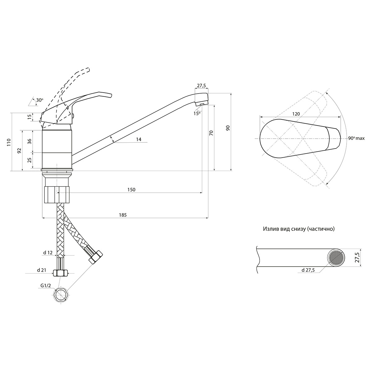 Гибкая подводка в фибронейлоновой оплетке, длина 50 см.