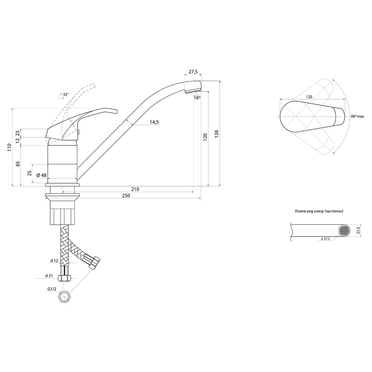 Гибкая подводка в фибронейлоновой оплетке, длина 50 см.