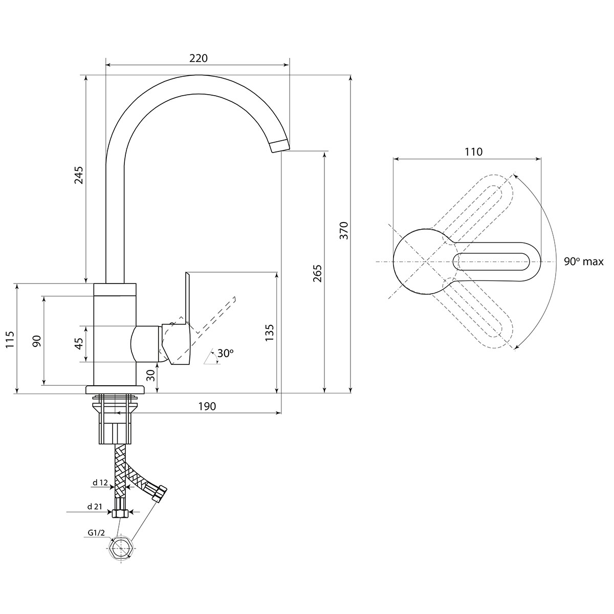 Гибкая подводка в фибронейлоновой оплетке, длина 50 см.