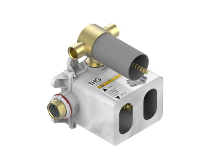 Внутренняя часть, THG, назначение-для термостатического смесителя, стандарт подвода воды-1/2", с коробкой для встраивания, восковым картриджем, запорным вентилем с двумя выходами, без ручек регулировки