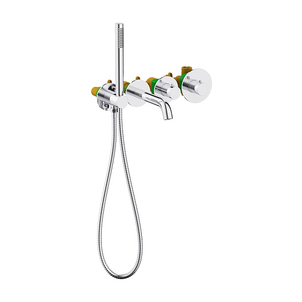 Встраиваемый смеситель с термостатом Timo Saona 2324 предназначен для монтажа в твердой или полой стене. Уникальная дизайнерская модель с раздельными горизонтальными блоками создаст неповторимый современный интерьер в ванной комнате. Основные преимущества встроенного смесителя: коммуникации, крепления и механизмы спрятаны в стену и видны только декоративные элементы, установить встроенный смеситель можно в любом месте. Термостатический картридж поддерживает стабильную температуру воды, обеспечивая максимально комфортные условия для принятия водных процедур. Стильная лейка-карандаш удобна в использовании и фиксируется на держателе с подключением шланга для душа. Регулировка температуры и напора воды осуществляется джойстиком справа. Переключение потока воды с излива на ручную лейку осуществляется поворотом ручки дивертора. Сложностей монтажа не возникает при установке смесителя опытным сантехником. Внимательно изучите инструкцию по монтажу и эксплуатации.