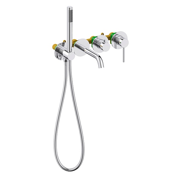 Встраиваемый смеситель Timo Saona 2314 предназначен для монтажа в твердой или полой стене. Уникальная дизайнерская модель с раздельными горизонтальными блоками, создаст неповторимый современный интерьер в ванной комнате. Основные преимущества встроенного смесителя: коммуникации, крепления и механизмы спрятаны в стену и видны только декоративные элементы, установить встроенный смеситель можно в любом месте. Стильная лейка-карандаш удобна в использовании и фиксируется в держателе с подключением душа. Регулировка температуры и напора воды осуществляется джойстиком справа. Переключение потока воды с излива на ручную лейку осуществляется поворотом ручки дивертора. Сложностей монтажа не возникает при установке смесителя опытным сантехником. Внимательно изучите инструкцию по монтажу и эксплуатации.