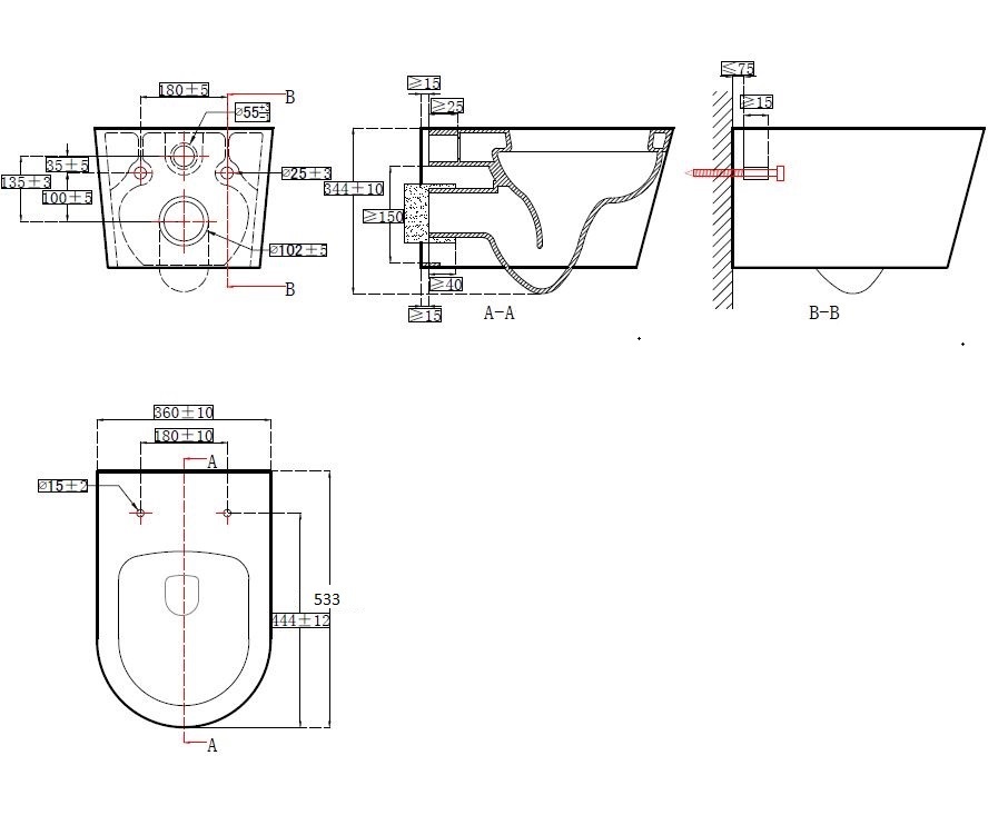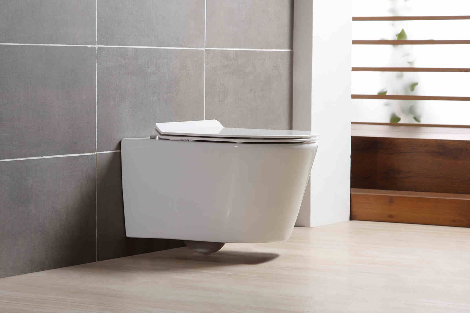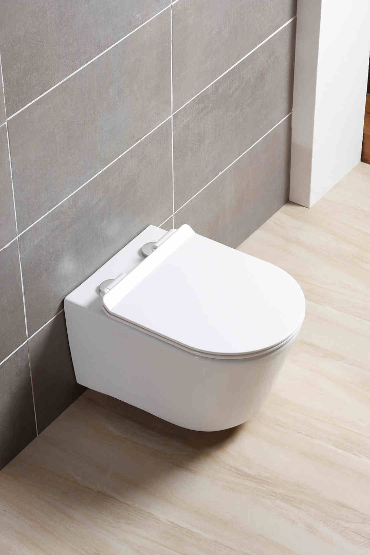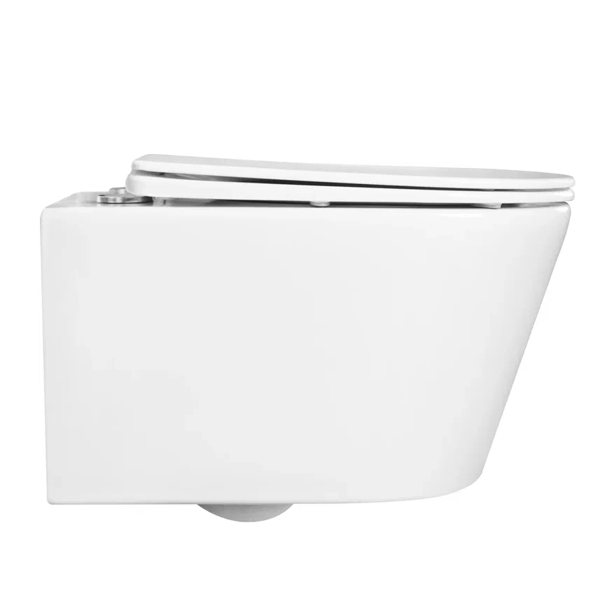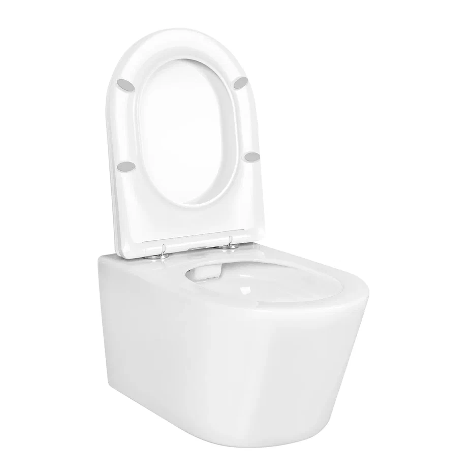 AQ1363W-00 ОБЕРОН Унитаз подвесной безободковый 531*360*344мм, тонкое сиденье с механизмом плавного закрывания, крепеж