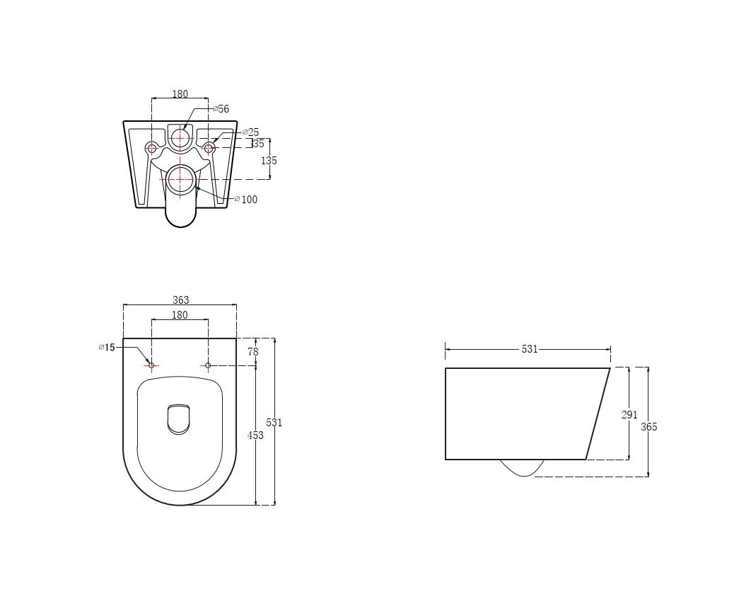 Унитаз подвесной AQUATEK ОБЕРОН AQ1365T-00, безободковый, 531*360*344мм, смыв TORNADO, тонкое сиденье с механизмом плавного закрывания, крепеж