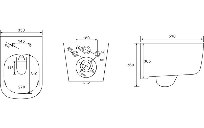 Унитаз компакт подвесной безободковый AQUATEK ДИВА 510*350*360мм, тонкое сиденье, крепеж, AQ2012-00