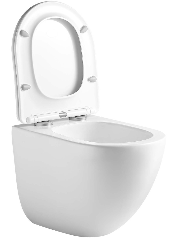 Безободковая конструкция чаши обеспечивает гигиеничность, отсутствие скрытых участков и простоту в уходе. Этот современный унитаз оснащен ультратонким легкосъемным сиденьем из дюропласта, что обеспечивает простоту в уходе и гигиеничность. Система плавного опускания сиденья предотвращает резкие звуки и обеспечивает комфортное использование.