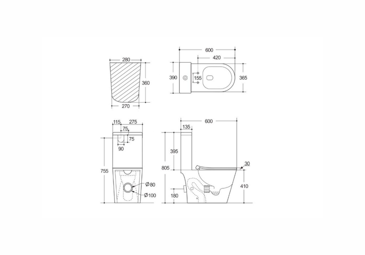 - удобство установки: открытая задняя часть облегчает доступ к сантехническим соединениям, что упрощает установку и замену унитаза
