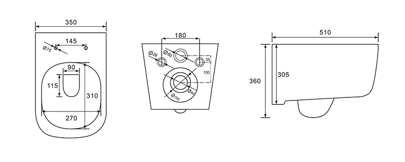 Унитаз компакт подвесной безободковый AQUATEK ДИВА 510*350*360мм, тонкое сиденье, крепеж, AQ2012-00