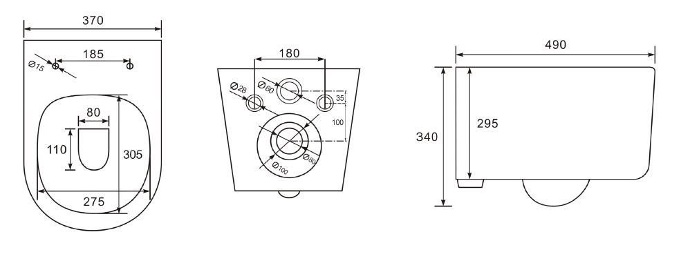 Унитаз компакт подвесной безободковый AQUATEK МИЯ 490*370*340мм, тонкое сиденье с механизмом плавного закрывания, крепеж, черный AQ2004-MB