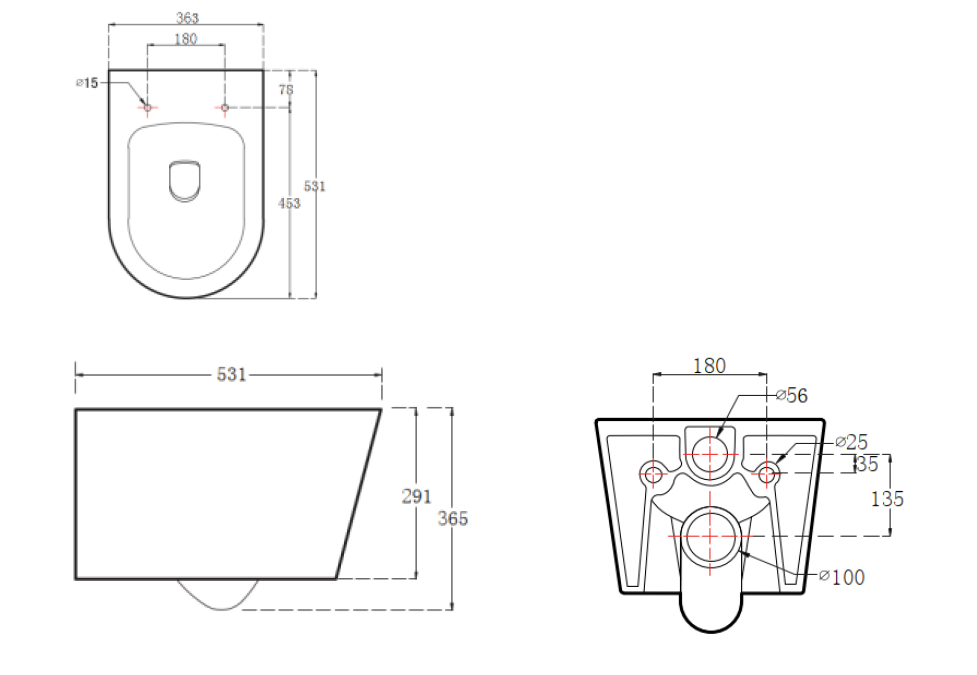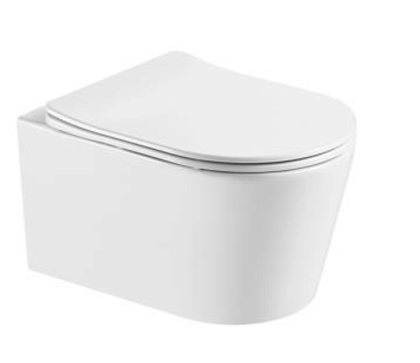Унитаз подвесной AQUATEK ОБЕРОН AQ1365T-00, безободковый, 531*360*344мм, смыв TORNADO, тонкое сиденье с механизмом плавного закрывания, крепеж