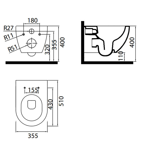 Чаша подвесного унитаза Ravak Uni Chrome RimOff (X01535)