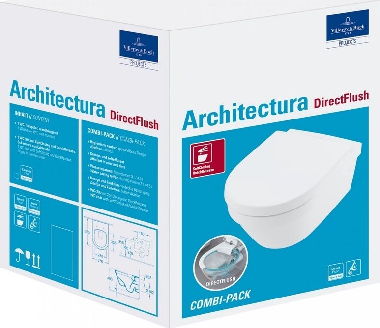 Унитаз подвесной Villeroy & Boch Architectura Directflush (4694HR01) безободковая (с сиденьем)