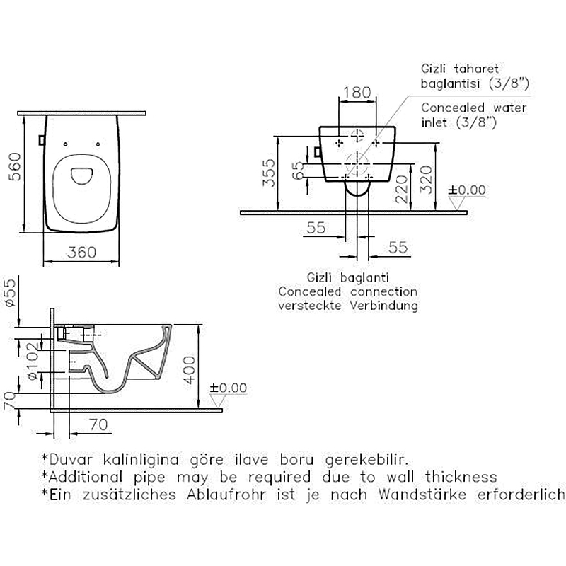 7672B083-0101 Vitra Metropole безободковый подвесной унитаз, цвет матовый чёрный