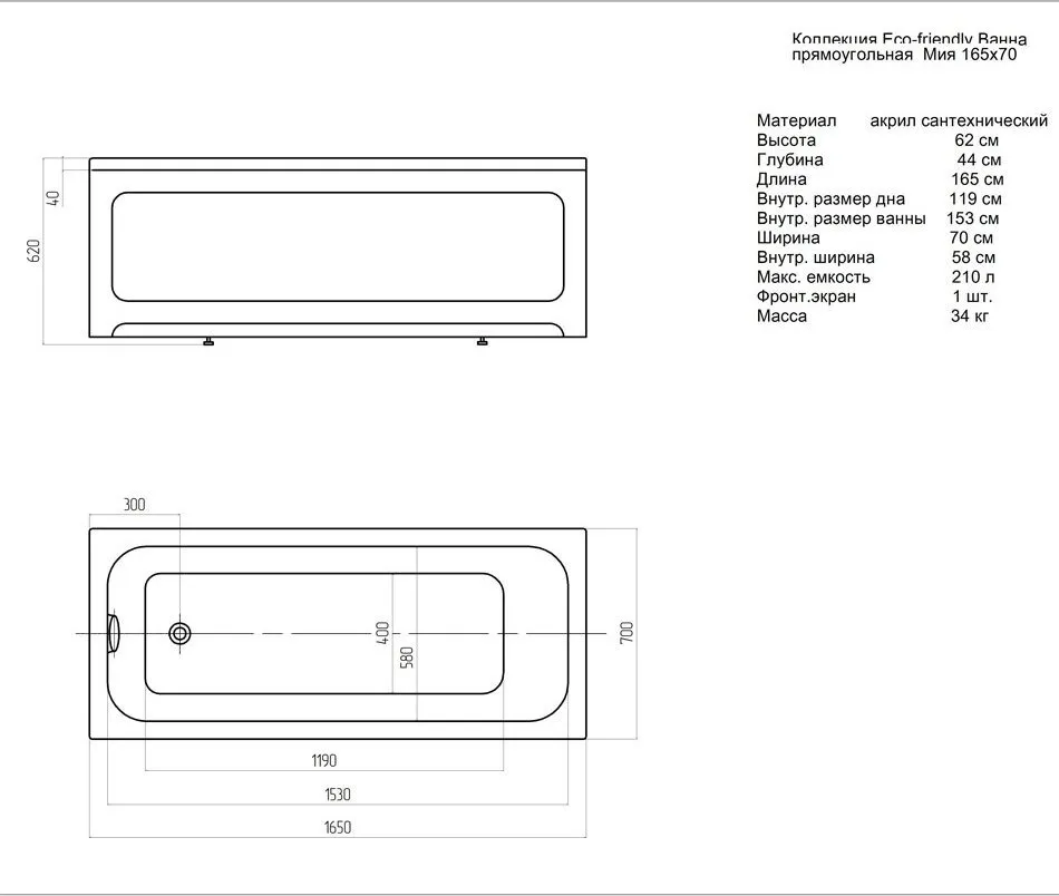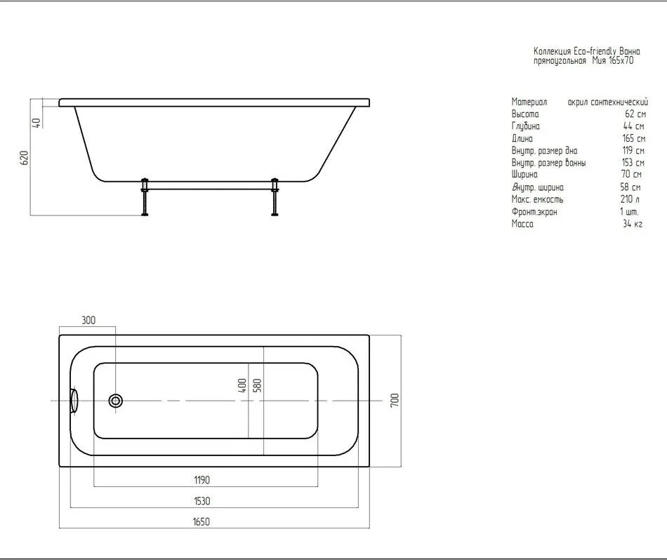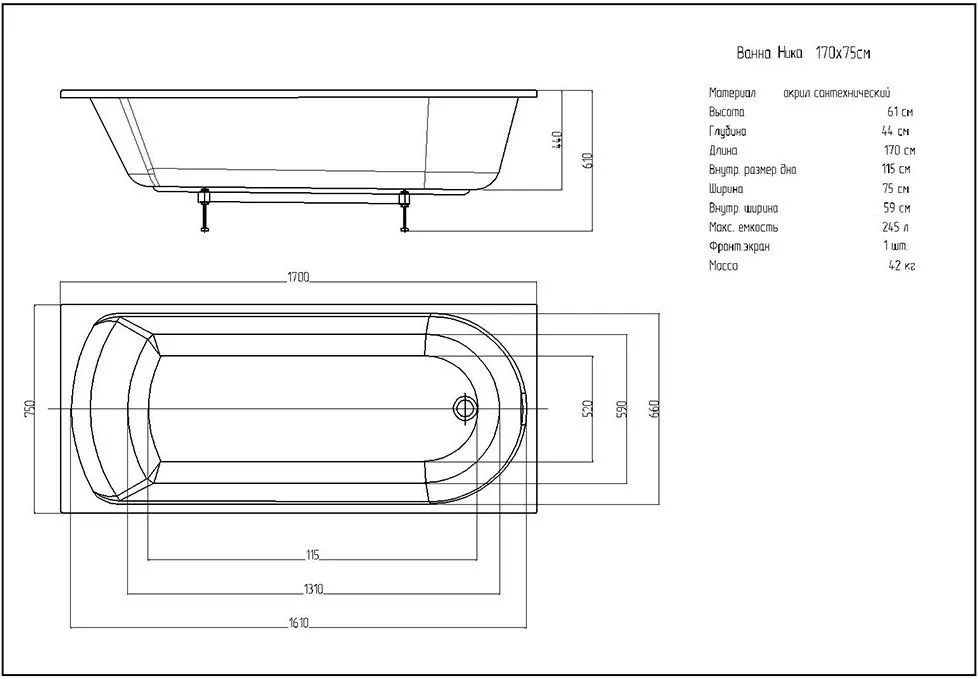 Акриловая ванна Aquatek Мия 1700x700 (MIY170-0000004)