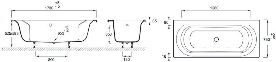 Акриловая ванна Jacob Delafon Elise (170х75 см)