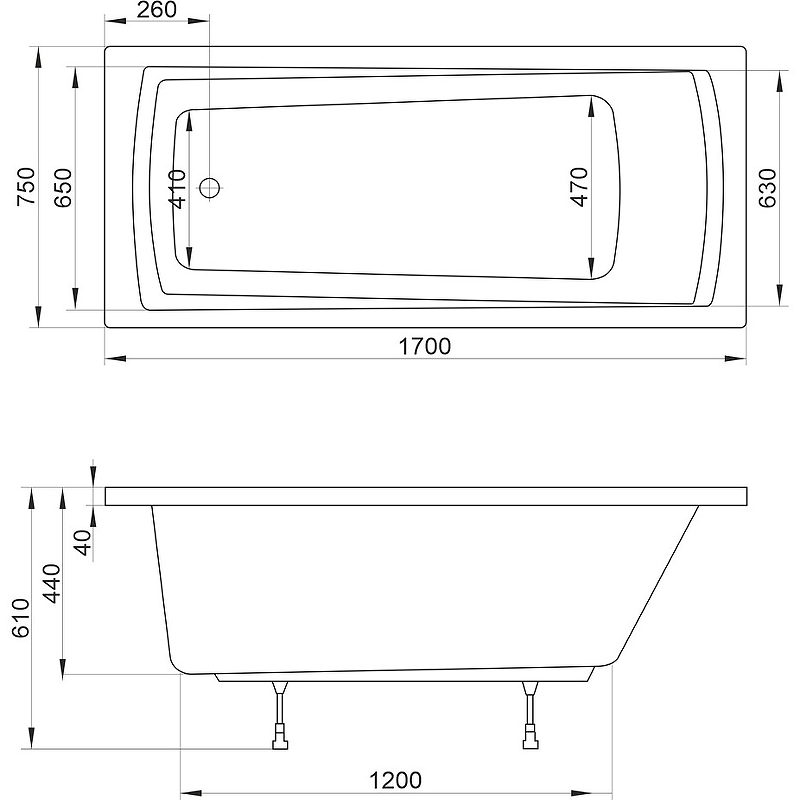 Акриловая ванна Ravak Domino Set Plus 170х75 70508024