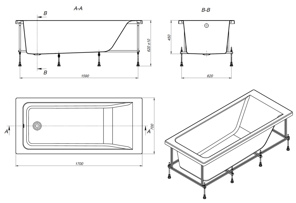 Акриловая ванна Roca прямоугольная Easy 170x70 (ZRU9302905)