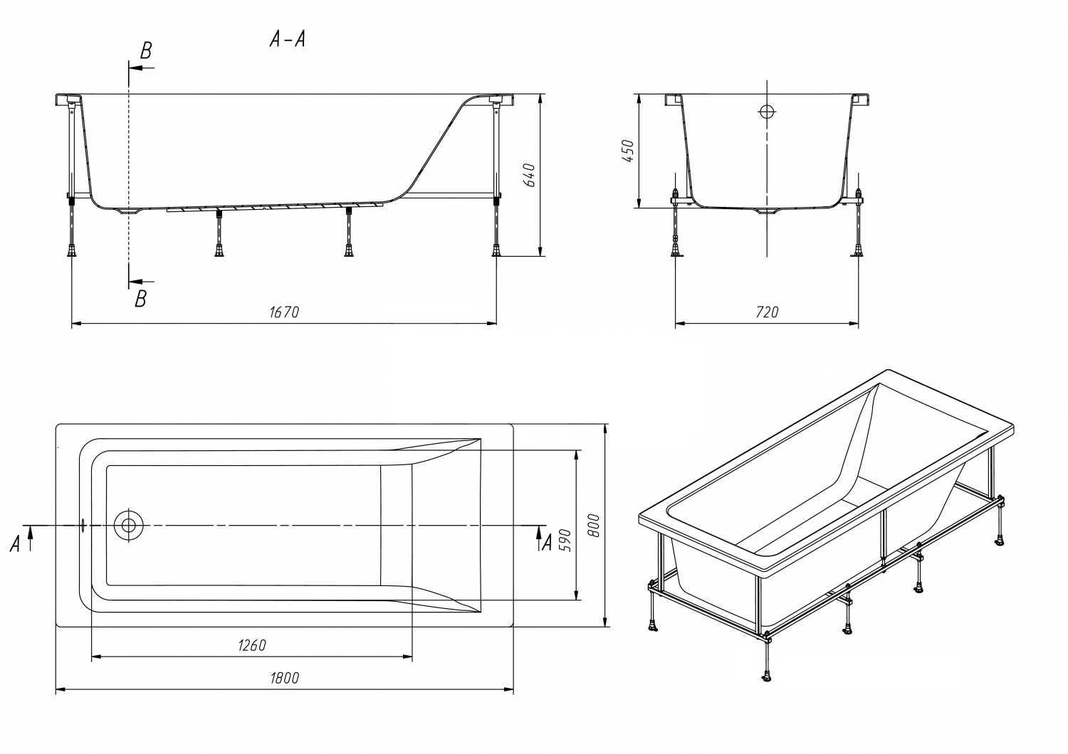 Ванна акриловая Roca Easy 180x80 прямоугольная белая 248618000