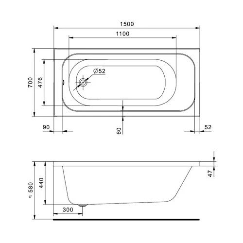 1.WH50.1.746 SANTEK ЛАММА 150х70 Ванна акриловая прямоугольная (NEW)