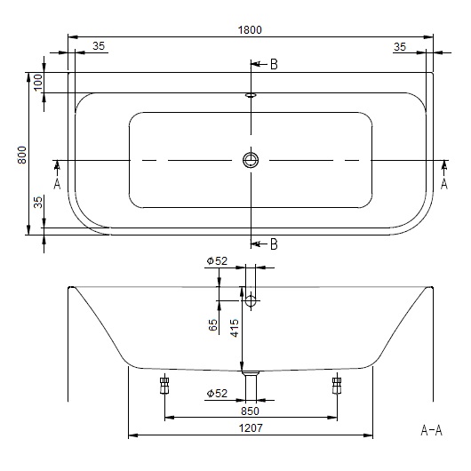 • Исполнение для одного или двух человек для совместного принятия ванны