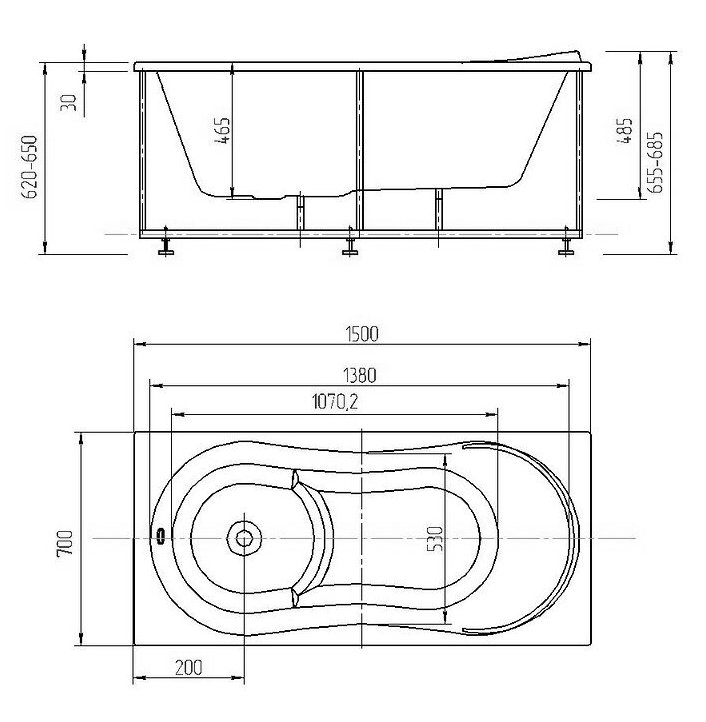 Акриловая ванна Aquatek Афродита 1500x700 (AFR150-0000079)