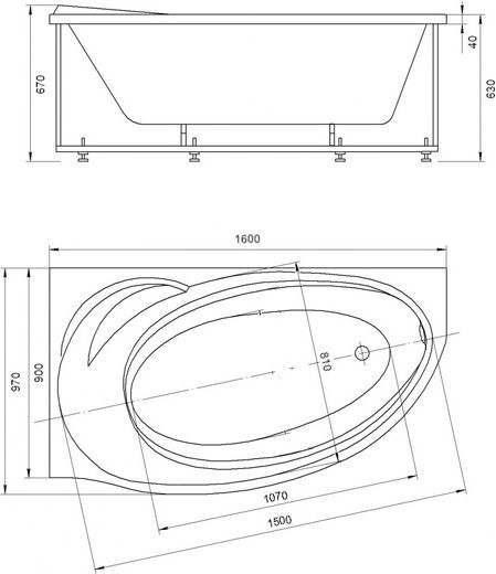 Акриловая ванна Aquatek Бетта 1600х970 левосторонняя, с фронтальным экраном (BET160-0000027)