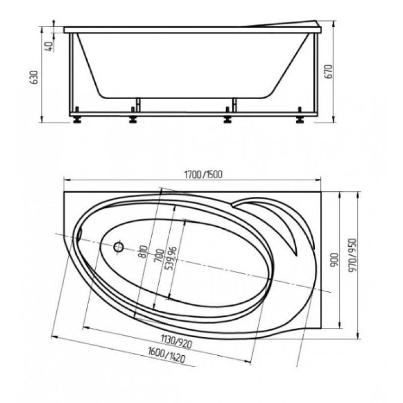 Акриловая ванна Aquatek Бетта 1700x970 левосторонняя (BET170-0000378)