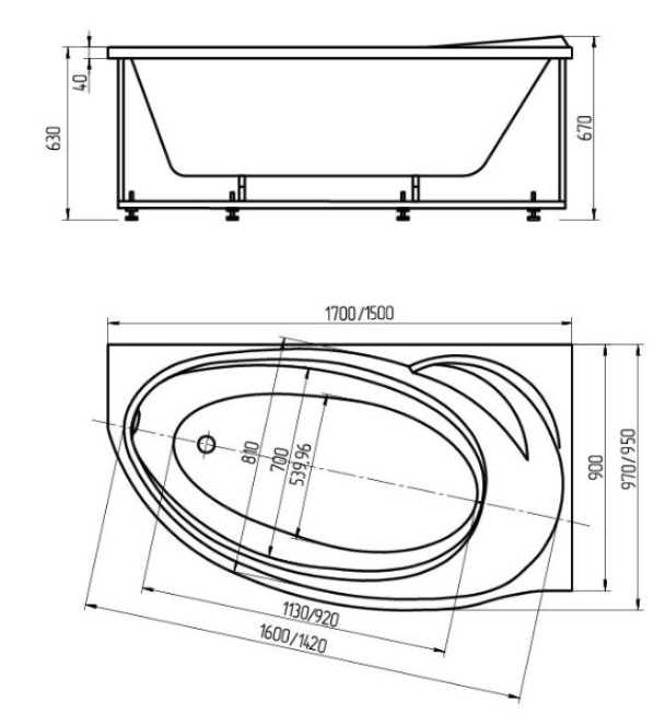 Акриловая ванна Aquatek Бетта 1700х970 правосторонняя, с фронтальным экраном (BET170-0000011)