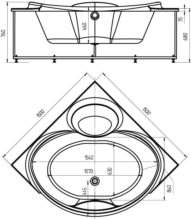 Акриловая ванна Aquatek Эпсилон 1500х1500 с фронтальным экраном, вклеенный каркас (EPS150-0000066)