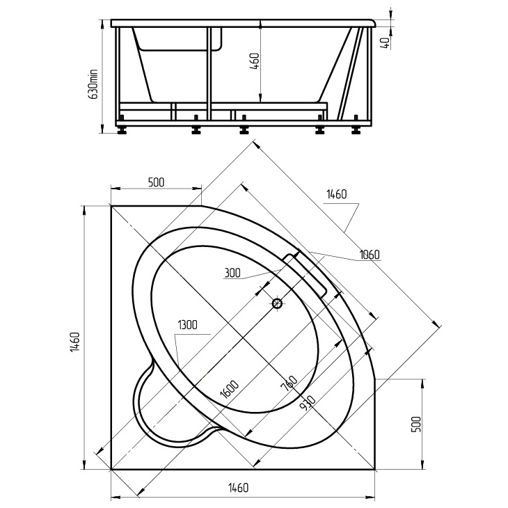 Акриловая ванна Aquatek Калипсо 1460x1460 (KAL146-0000045)