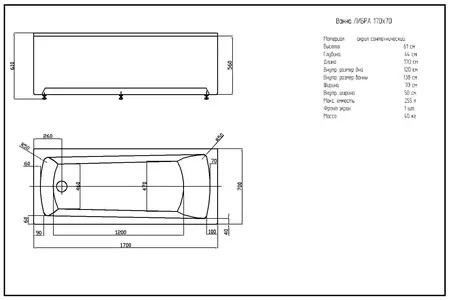 Акриловая ванна Aquatek Либра New 1700x700 (LIB170N-0000049)