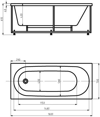 Акриловая ванна Aquatek Оберон 1600x700 с фронтальным экраном, слив слева (OBR160-0000026)