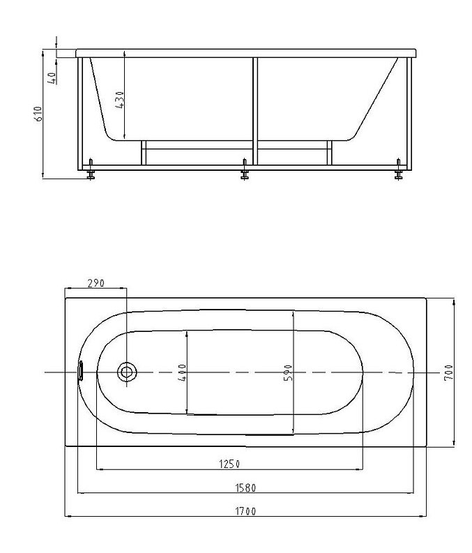 Акриловая ванна Aquatek Оберон 1700х700 (OBR170-0000165)