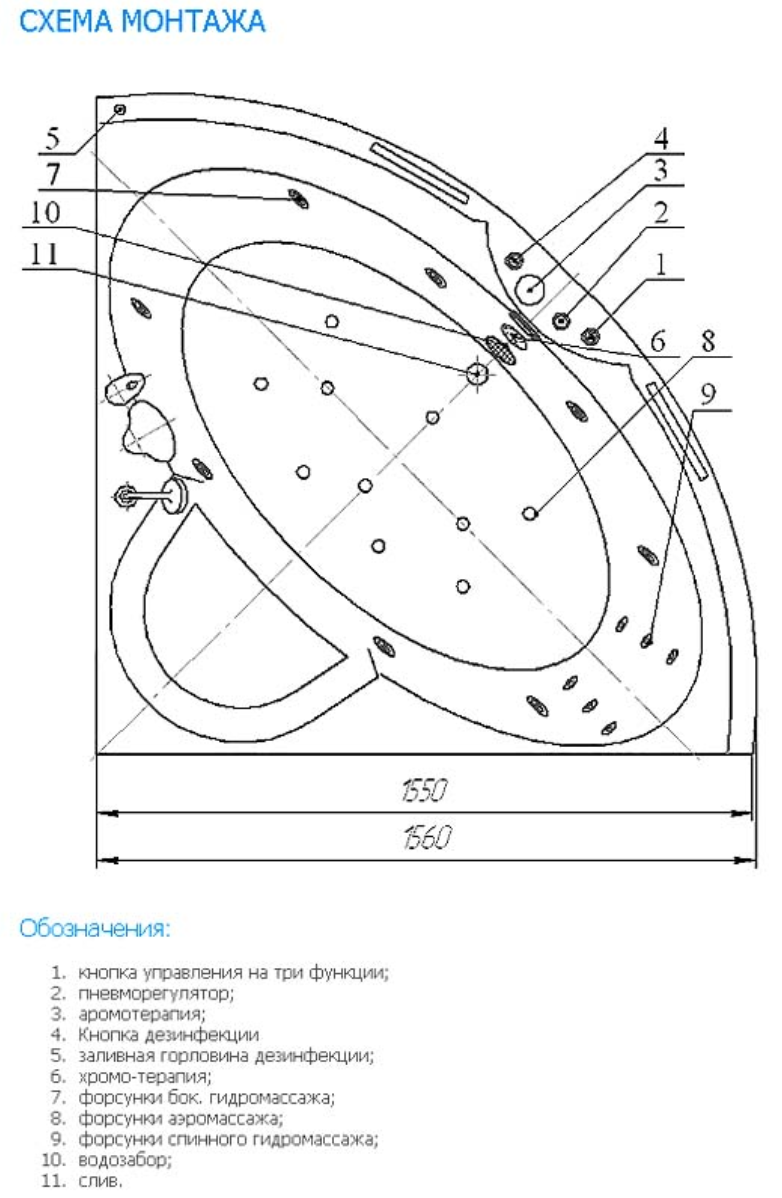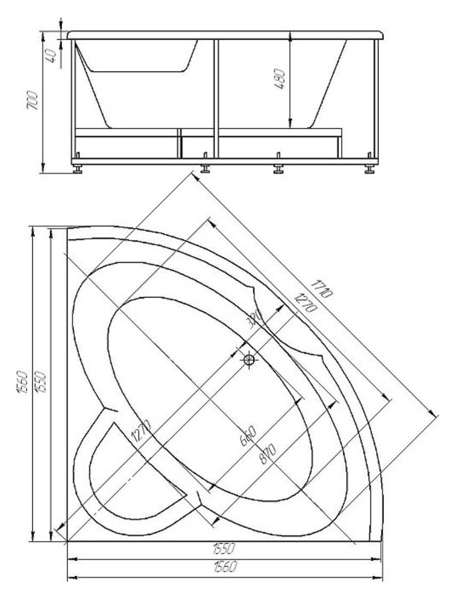Акриловая ванна Aquatek Поларис-2 1550х1550 вклеенный каркас, с фронтальной панелью (POL2-0000041)
