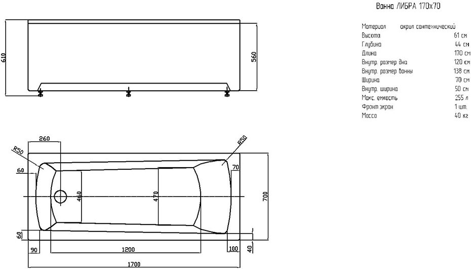 Акриловая ванна Aquatek Либра NEW 1700x700 (LIB170N-0000005)
