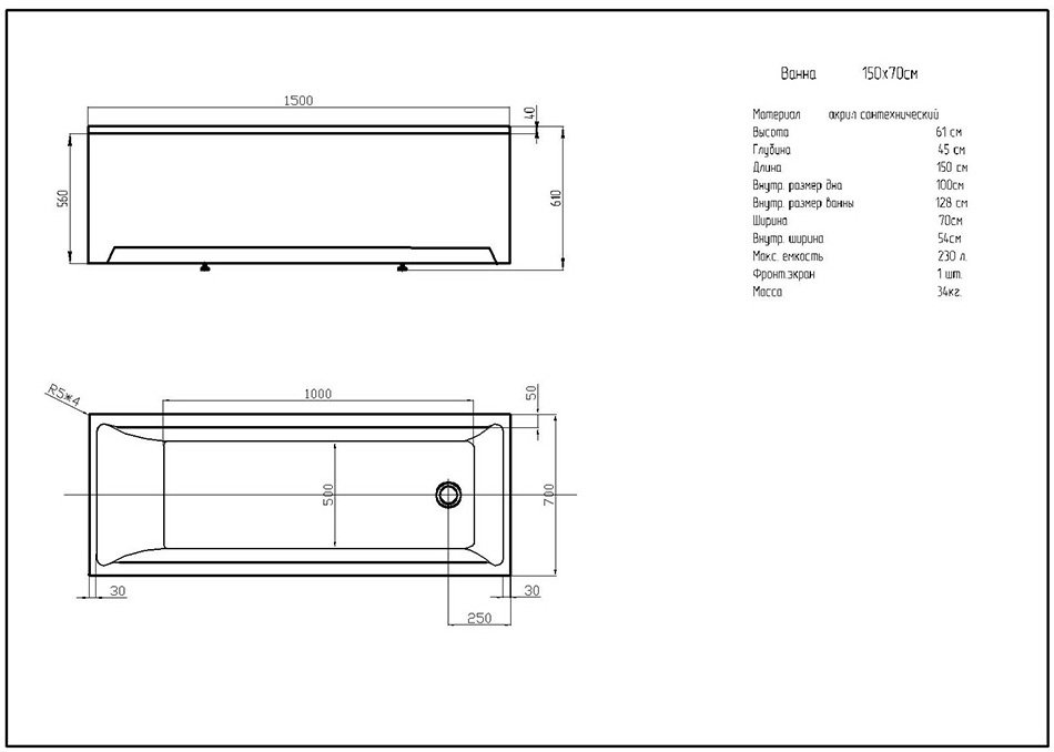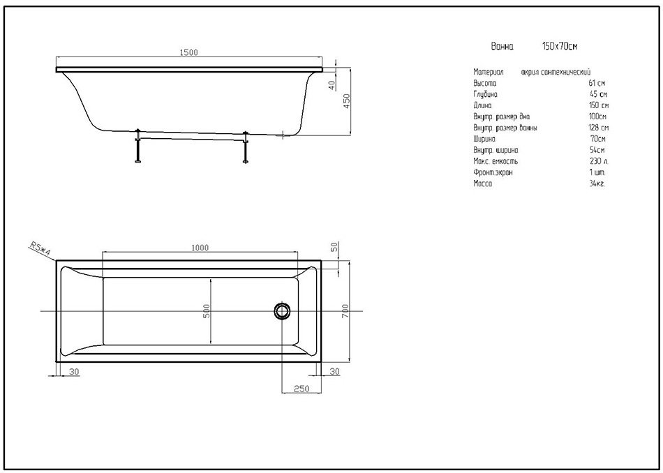 Акриловая ванна Aquatek Eco-friendly Лайма 1500х700 прямоугольная (LAI150-0000001)