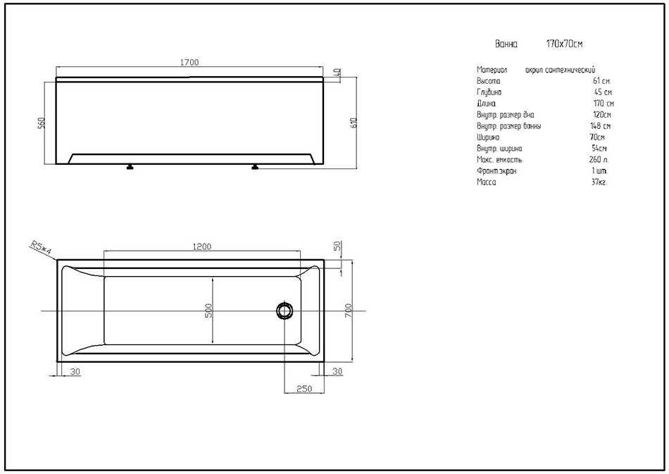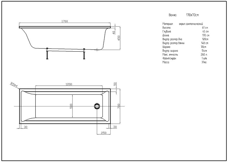 Акриловая ванна Aquatek Eco-friendly Лайма 1700х700 (LAI170-0000001)