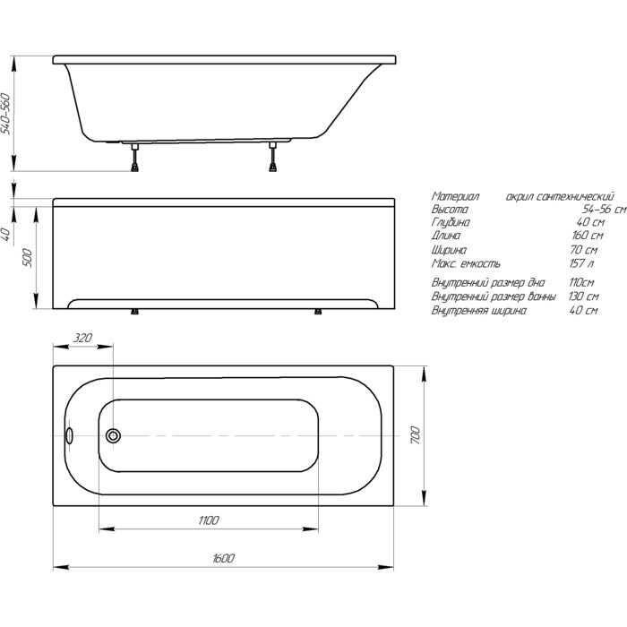 Акриловая ванна Aquatek Лугано Lifestyle 1600x700 (LUG160-0000001)