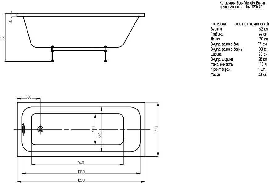 Акриловая ванна Aquatek Мия 1200x700 (MIY120-0000001)