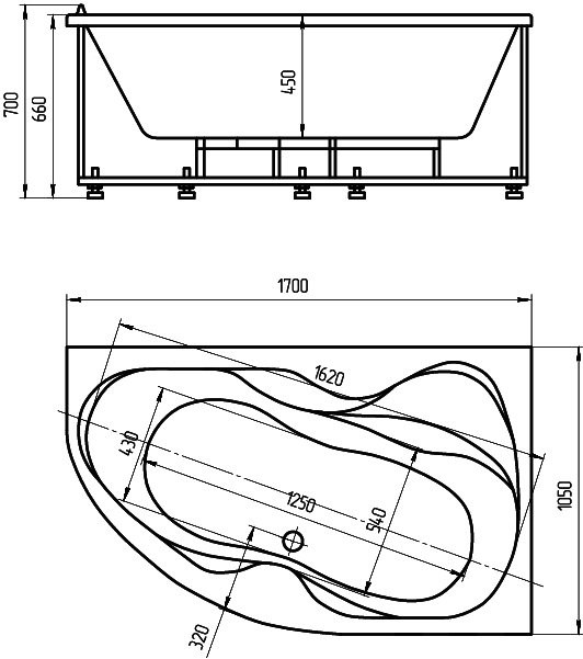 Акриловая ванна Aquatek Вега 1700x1050 правосторонняя, с фронтальным экраном (VEG170-0000083)