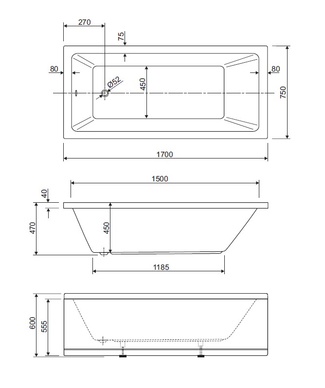 Акриловая ванна Cezares Plane solo 170х75, Белый (PLANE SOLO-170-75-45-W37)