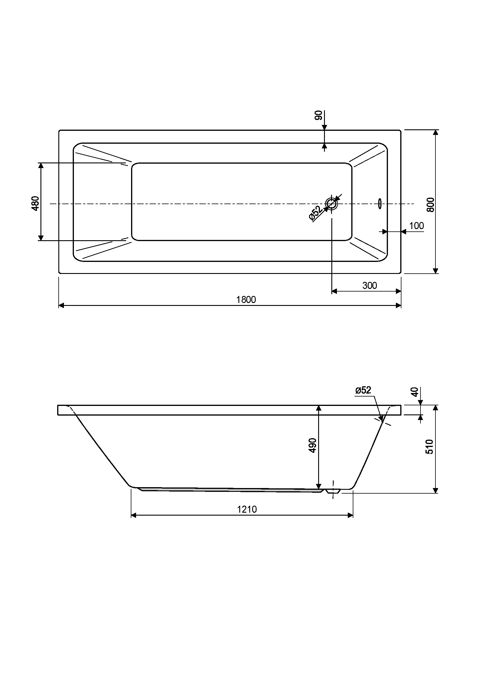 Акриловая ванна Cezares Plane solo 180х80, Белый (PLANE SOLO-180-80-49-W37)