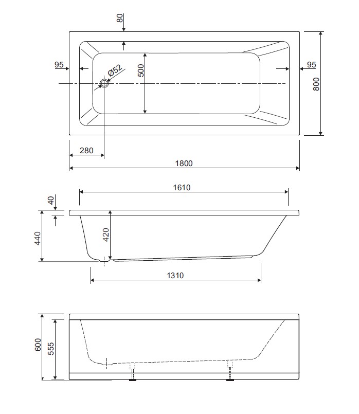 Акриловая ванна Cezares Plane solo mini 180х80, Белый (PLANE SOLO MINI-180-80-42-W37) Слив-перелив: приобретается отдельно