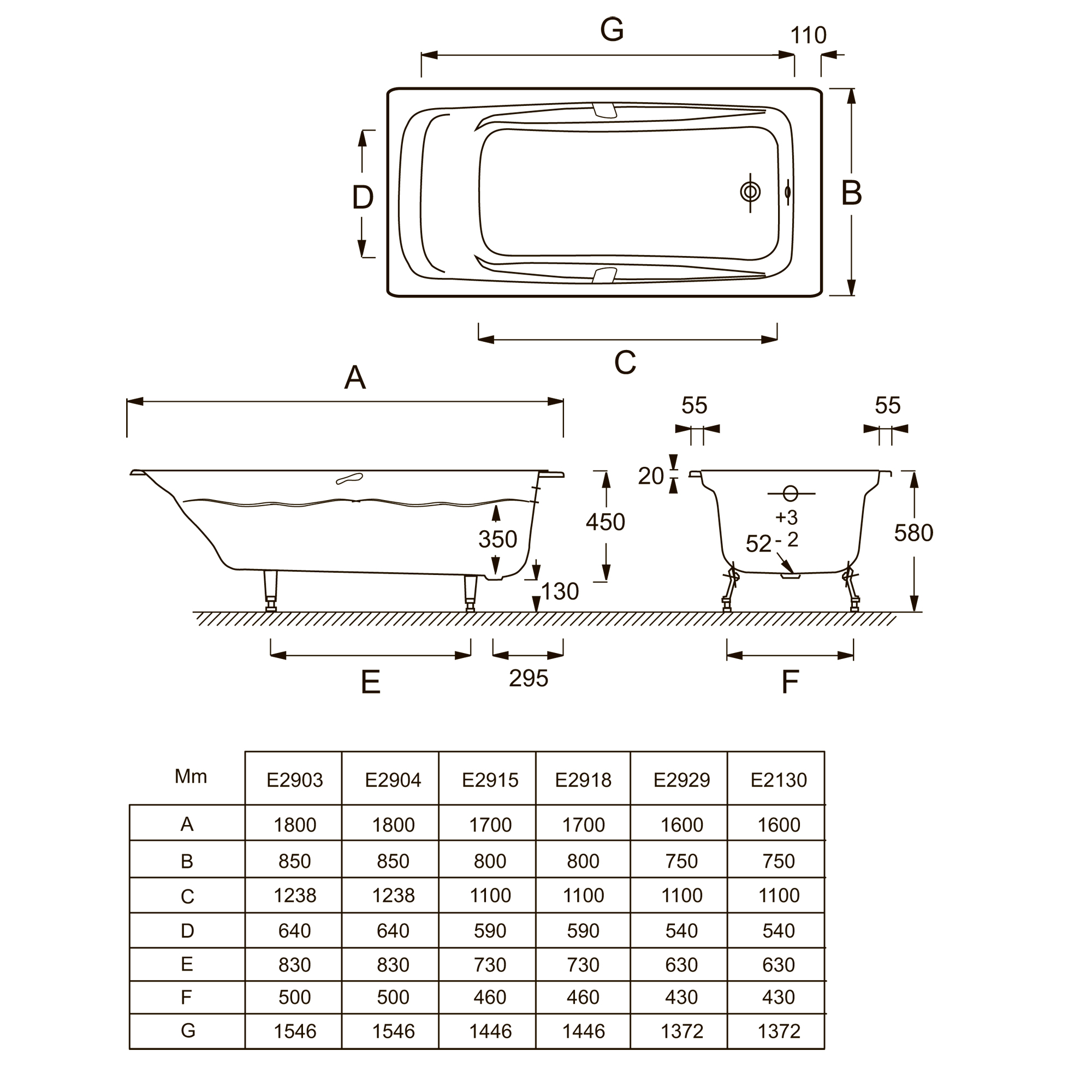 Ванна чугунная Jacob Delafon Repos (E2915) 170х80 с отверстиями для ручек