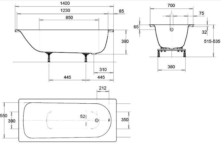 Ванна стальная Kaldewei Eurowa 309-1 140х70 (119512030001)