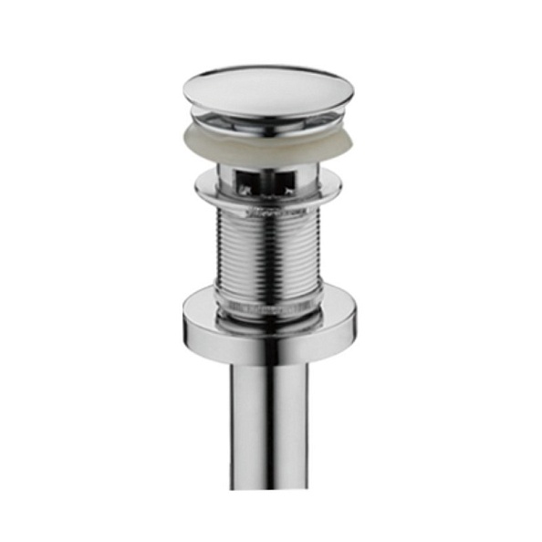 Донный клапан Haiba HB65-2. Данная модель имеет удлиненный металлический корпус. Крышка хромированная, выполнена из нержавеющей стали. Силиконовые прокладки обеспечивают плотное прилегание донного клапана к посадочному месту раковины. Имеет перелив.